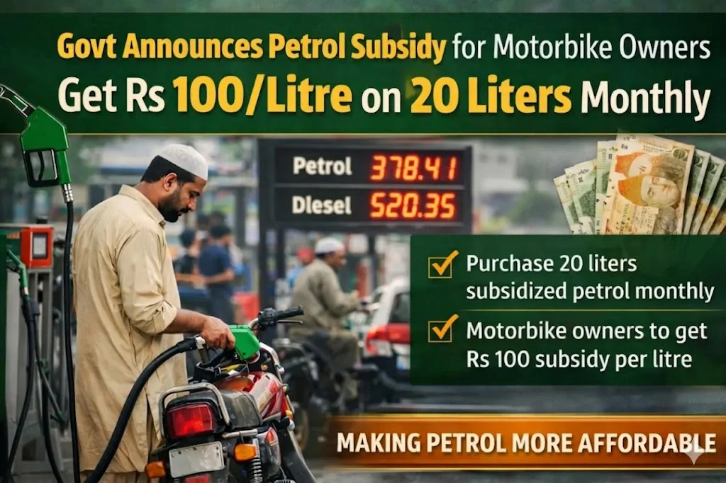 In a major relief measure amid record-high fuel prices, the Government of Pakistan has introduced a targeted petrol subsidy program for motorbike owners. Under this initiative, eligible users will receive Rs. 100 per litre subsidy on up to 20 litres of petrol per month, helping reduce the financial burden caused by rising fuel costs.